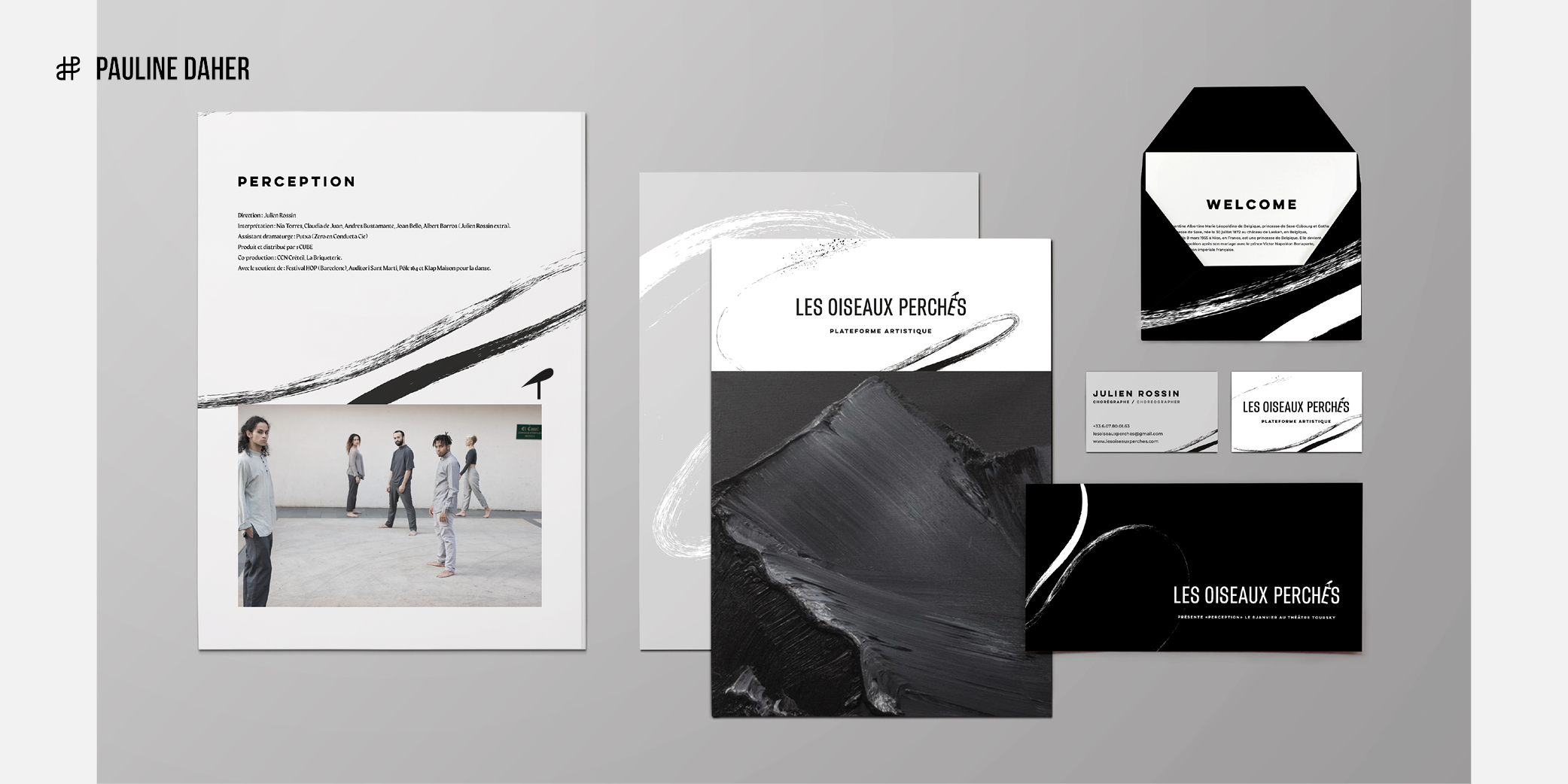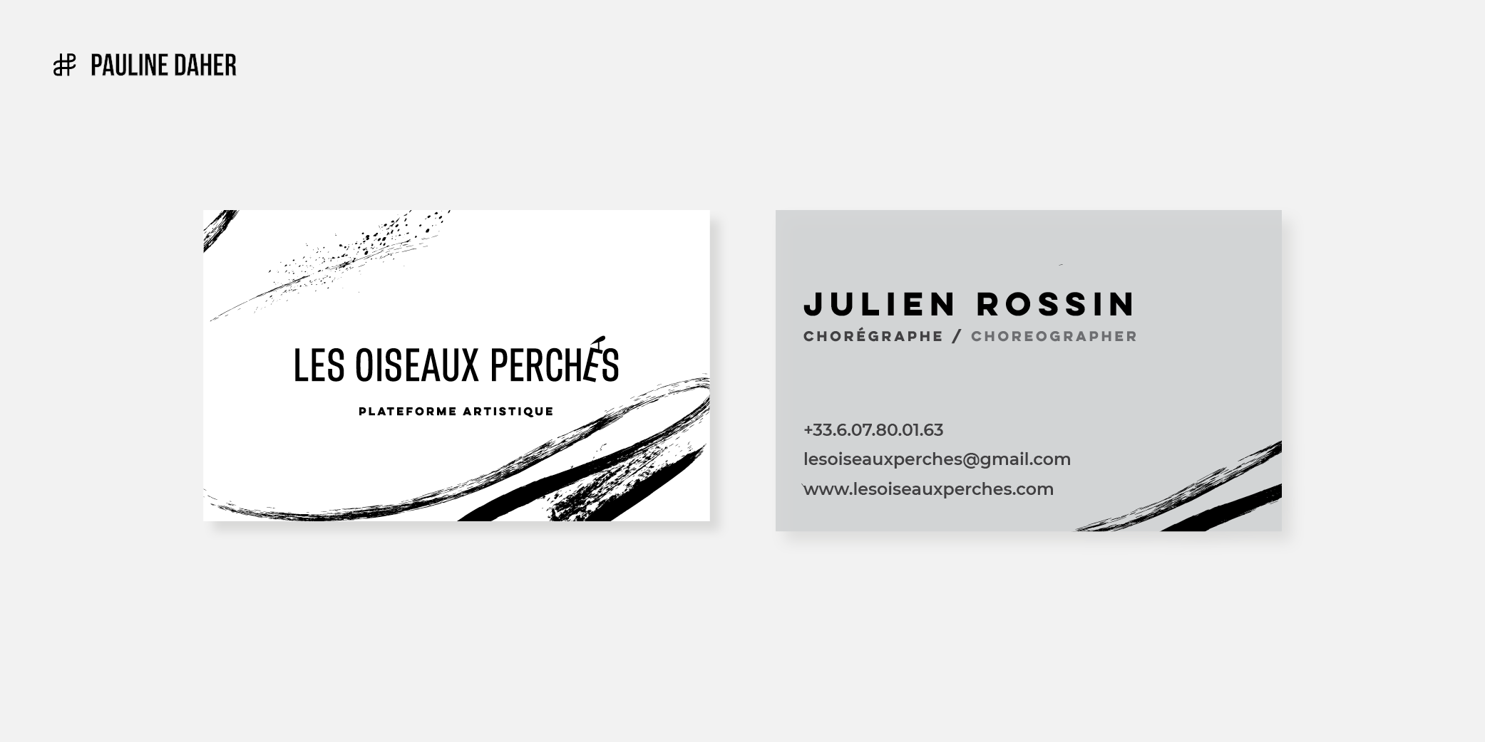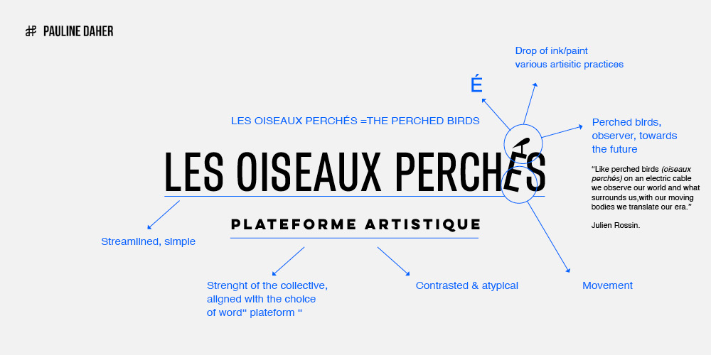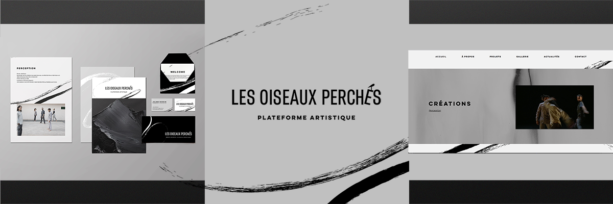LES OISEAUX PERCHÉS (THE PERCHED BIRDS) is an artistic platform created by Julien Rossin, a dancer, performer, and choreographer. It is a space dedicated to the study of movement through various artistic practices. The branding expresses movement, a blend of artistic practices, and Julien Rossin’s approach: rugged, natural, and streamlined.