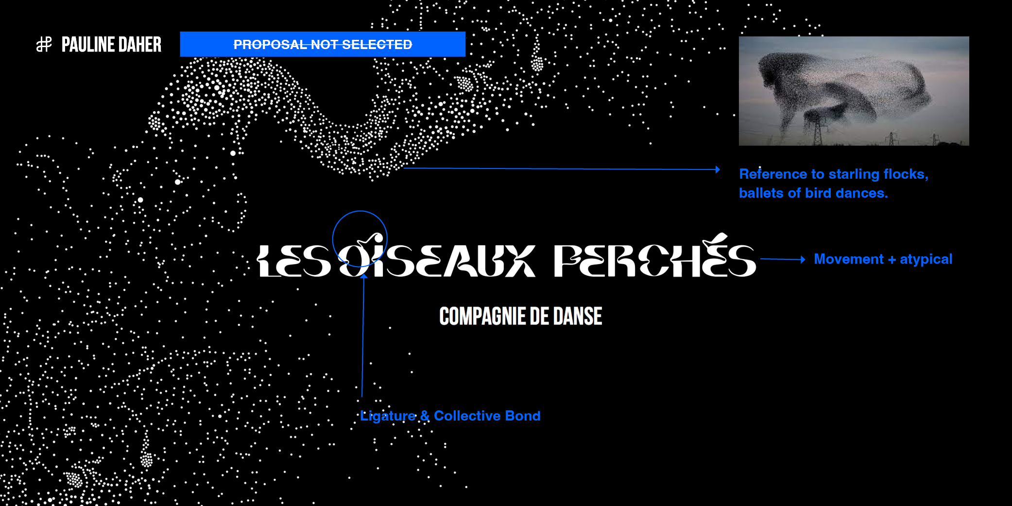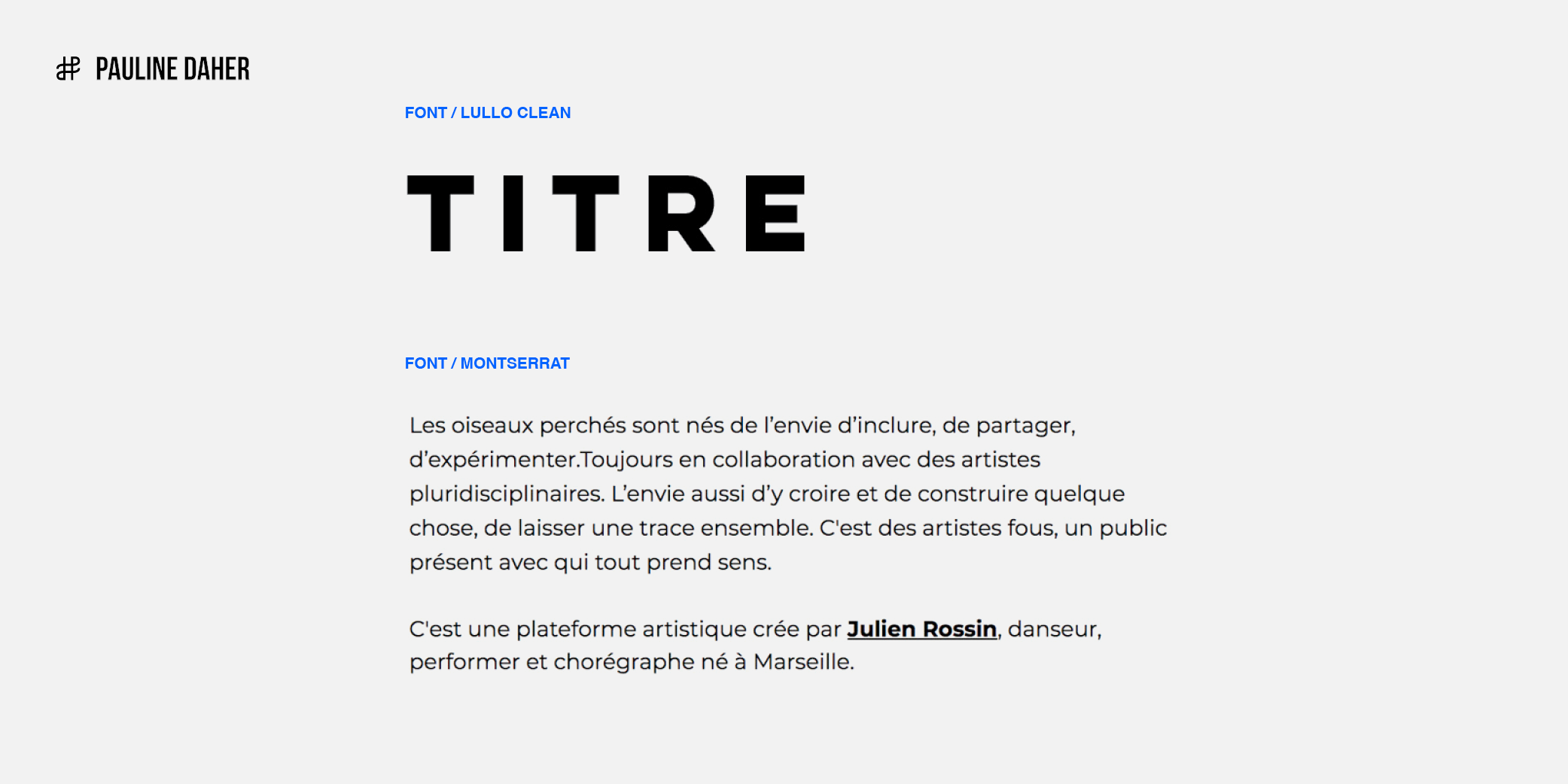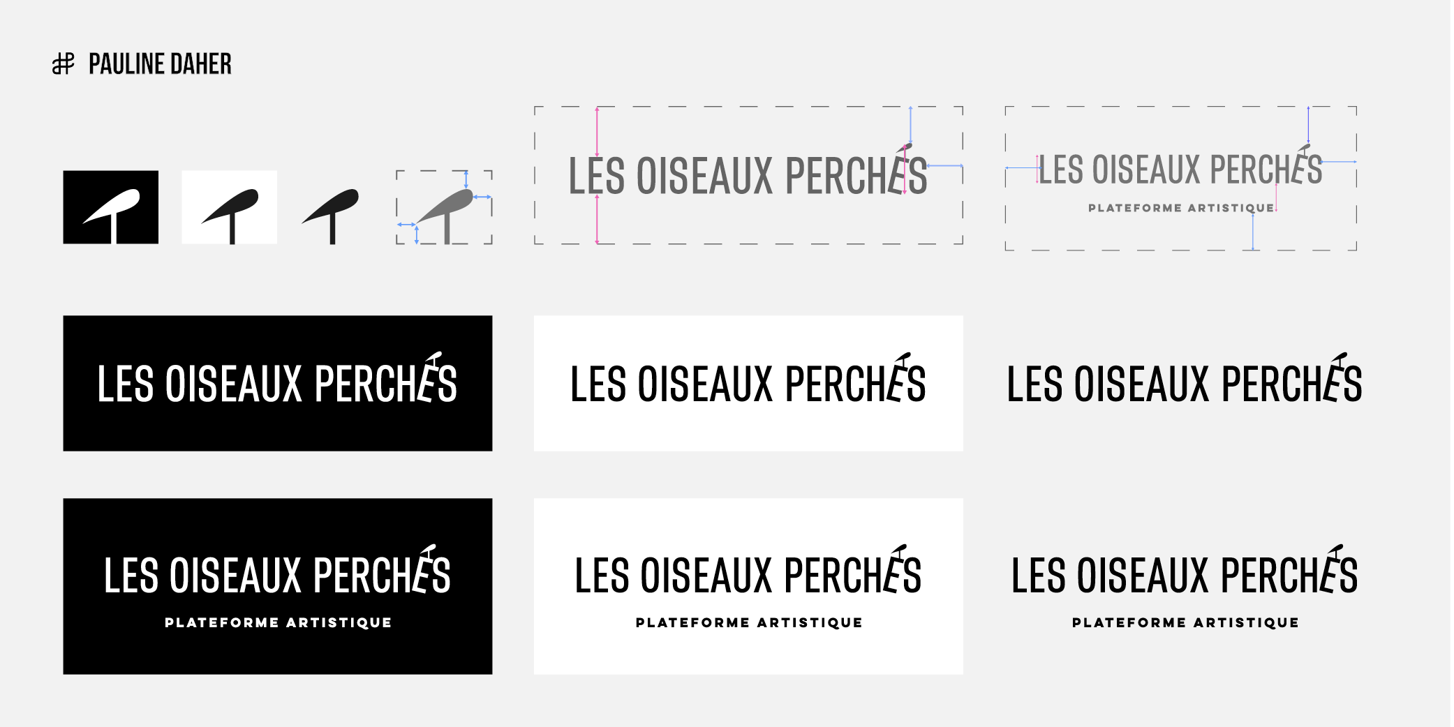 LES OISEAUX PERCHÉS (THE PERCHED BIRDS) is an artistic platform created by Julien Rossin, a dancer, performer, and choreographer. It is a space dedicated to the study of movement through various artistic practices. The branding expresses movement, a blend of artistic practices, and Julien Rossin’s approach: rugged, natural, and streamlined.