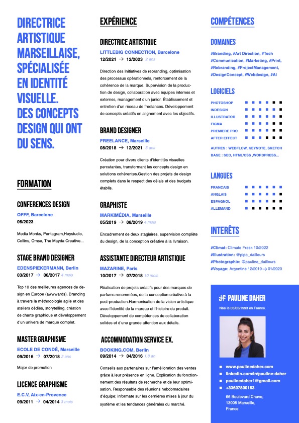 Graphic designer from Marseille, specialized in visual identity, inspired by the sea. My logo reflects references to design, my initials, and a minimalist style that aligns with my approach